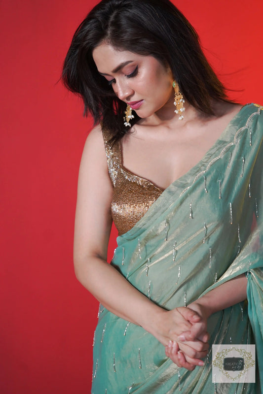Chammak Challo Pastel Green Shimmer Satin Saree