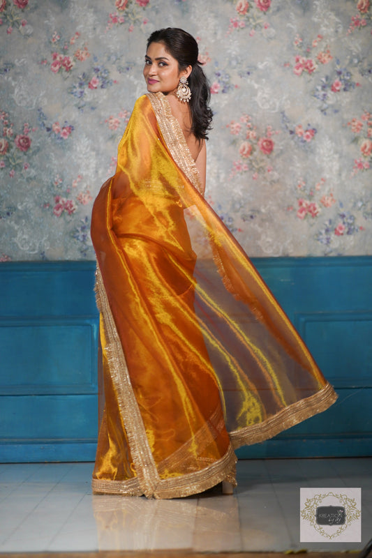 Save 20%Fiery Gold Zari Tissue Banno Saree