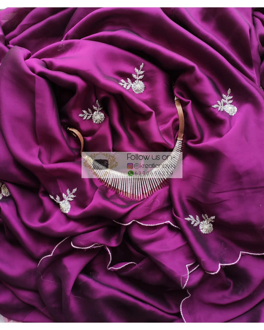 Purple Wine Georgette Silk Saree With 86 Bootas