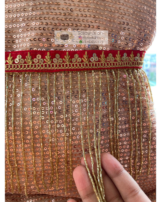 Peach Sequins and Zari Waist belt with Tassels