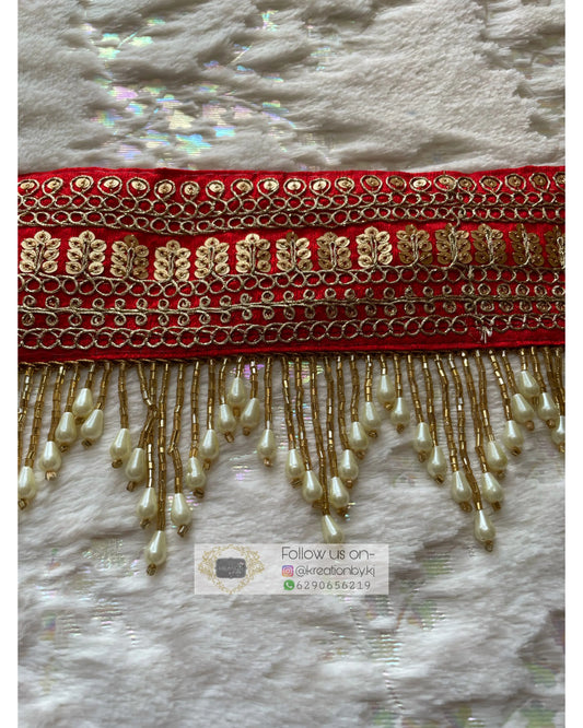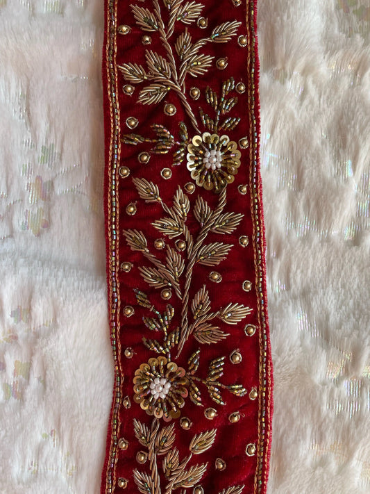 Red Floral Waist Belt with Cutdana Tassels
