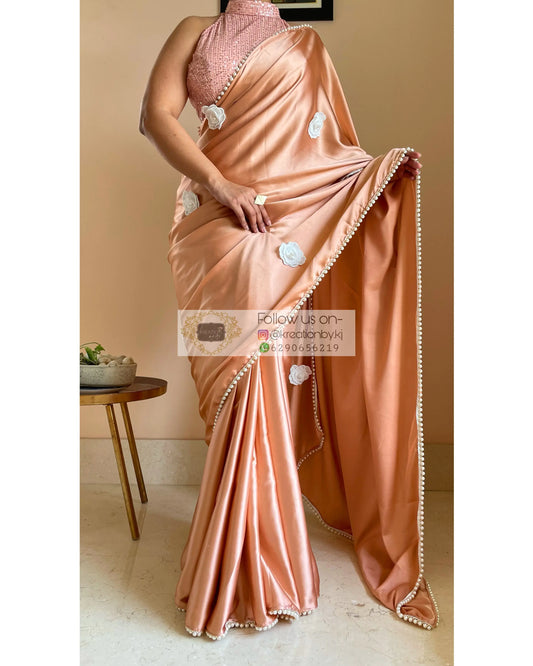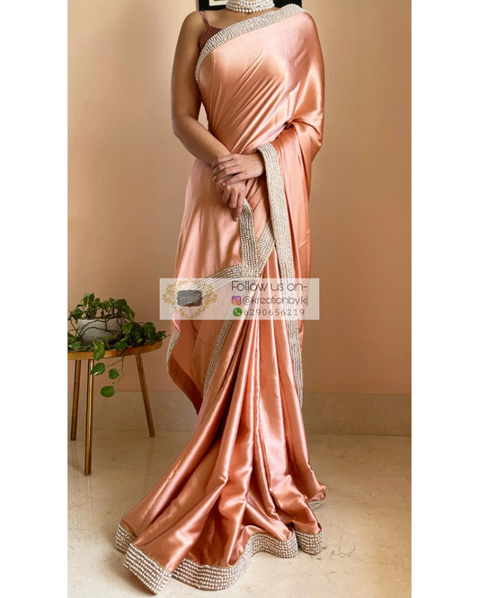 Sold outChampagne Gold Satin Saree