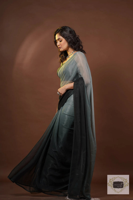 Cloudy Nights Crushed Organza Ombré Cocktail Saree