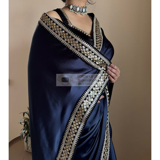 Metallic Satin Saree for Party, Cocktail, Bridesmaids Elegant Shine Meets Effortless FlowMake...