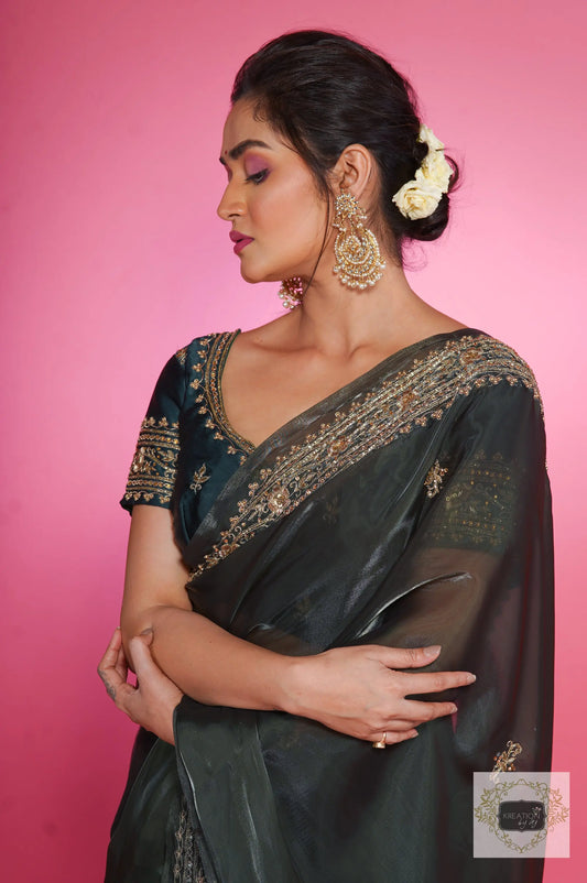 Dark Green Floral Bridal Cutdana Jaal Blouse Piece