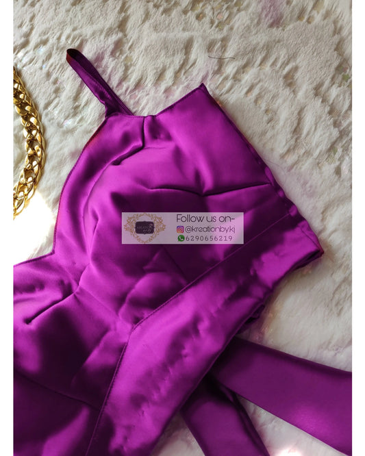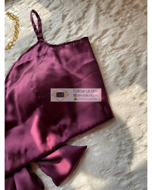 Dark Eggplant Wine Satin Silk Strappy Cocktail Blouse