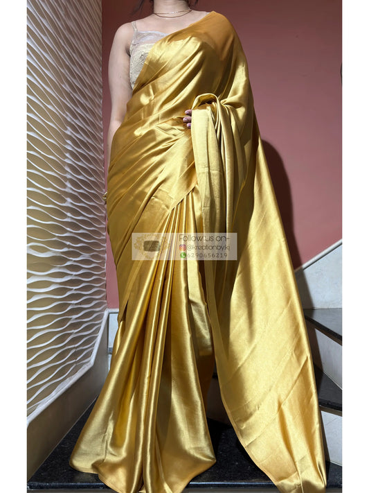 Golden Mustard Satin Silk Bridesmaid Saree with Handmade Tassels on Pallu