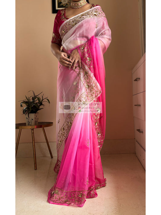 Gulab Khas Ombre Mehraab Jaal Cutdana Saree
