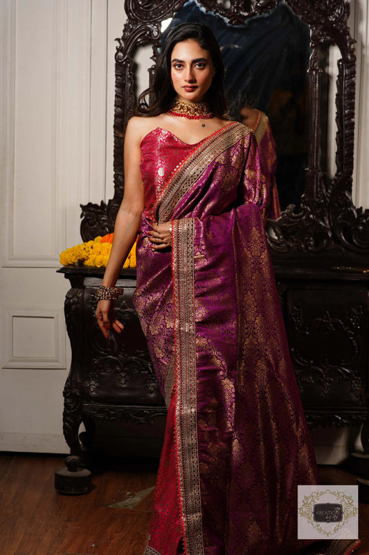 Grey-Rose Gold Ombré Saree For Bridesmaid