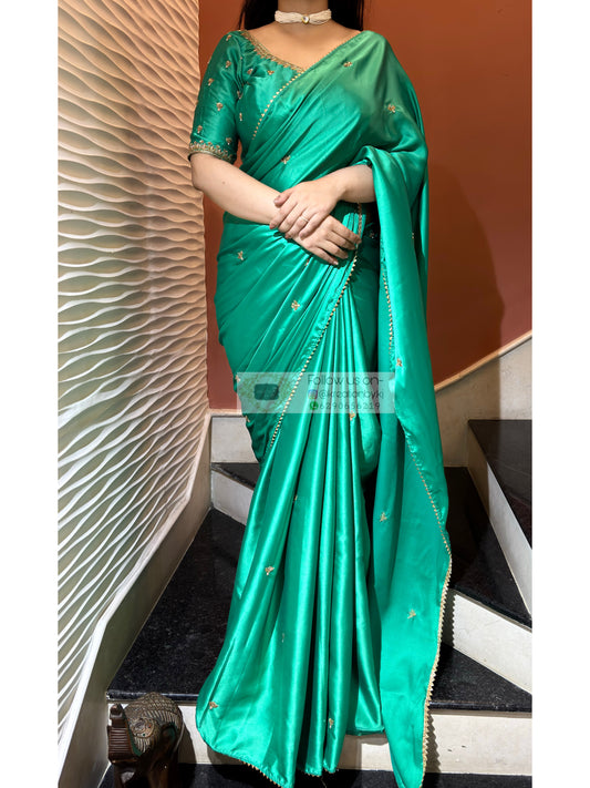 Metallic Satin Saree for Party, Cocktail, Bridesmaids Elegant Shine Meets Effortless FlowMake...