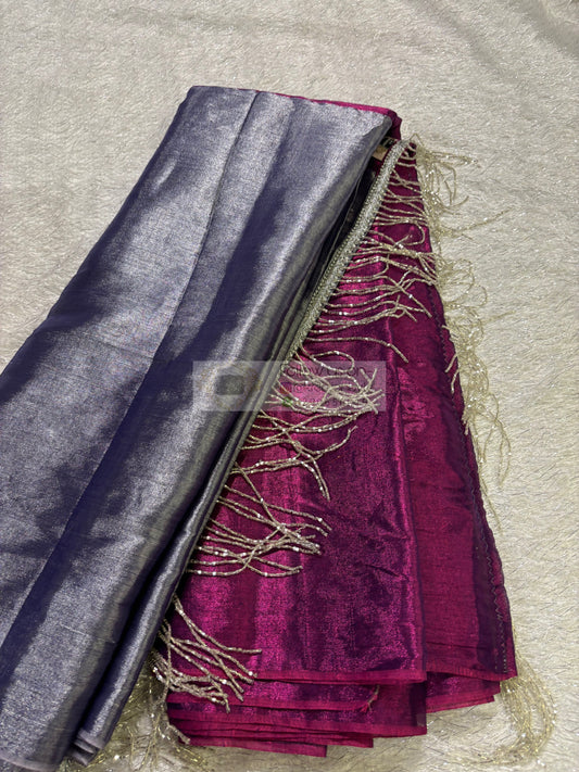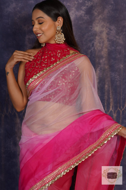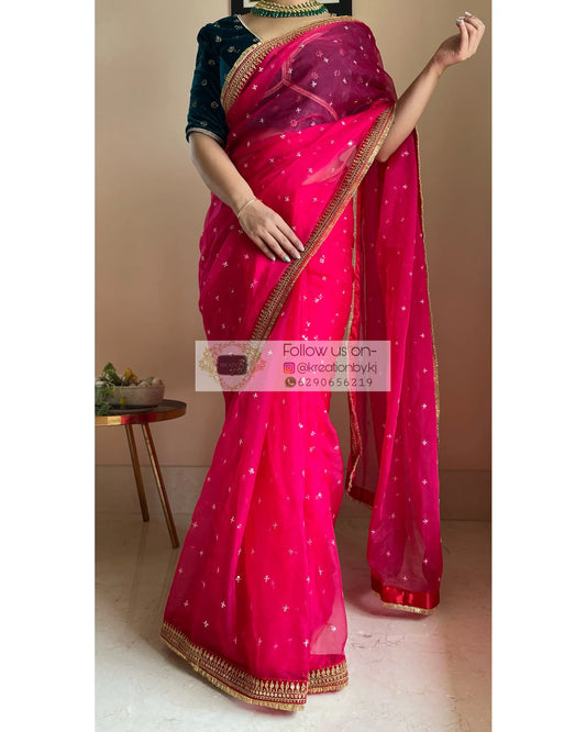 Hot Pink Metallic Shimmer Satin Sequin Piyali Saree