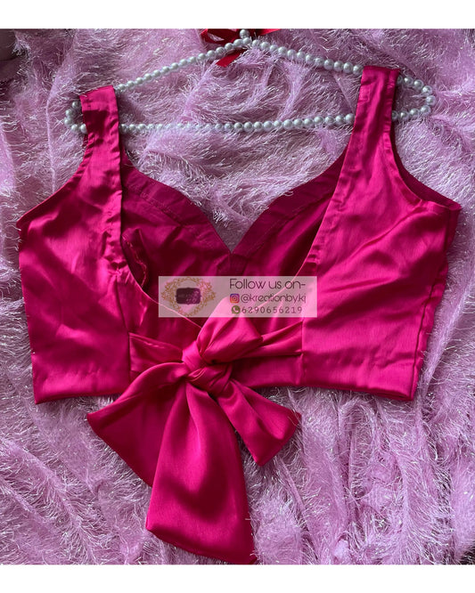 Hot Pink Satin Silk Saree with Handmade Tassels on Pallu