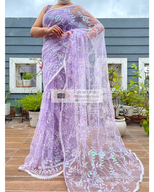 Step into regal charm with our heritage tikki and sequin Handembroidery work...