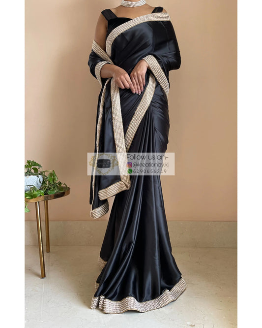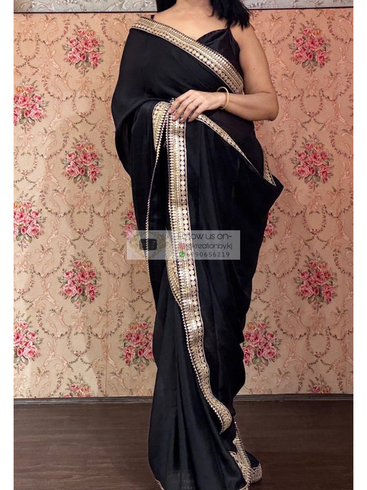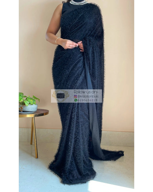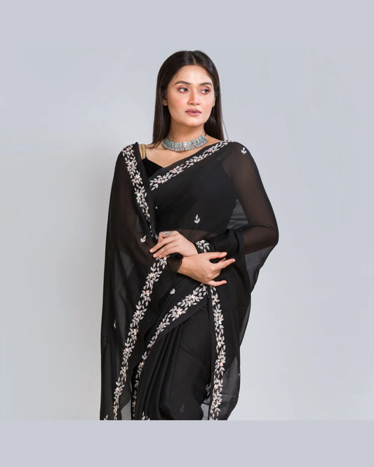 Black Georgette Cutdana Mehraab Jaal Cocktail Saree