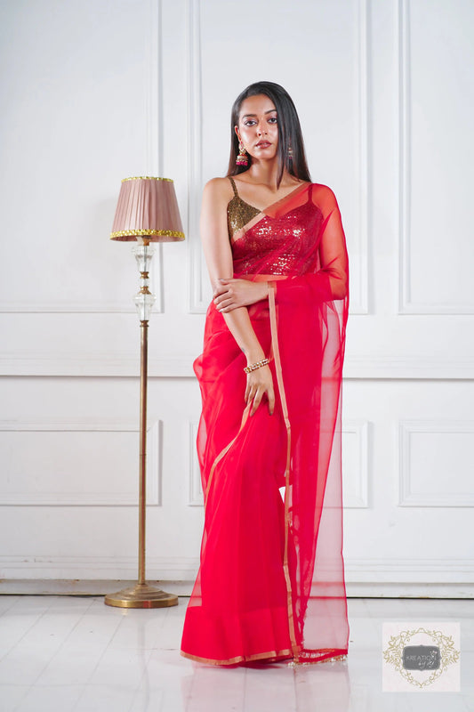 METALLIC SHIMMER SATIN COCKTAIL SAREE