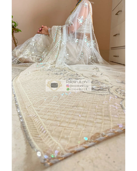 Step into regal charm with our heritage tikki and sequin Handembroidery work...