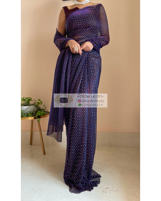 Violet Glass Tissue Saree with Handembroidered Scalloping
