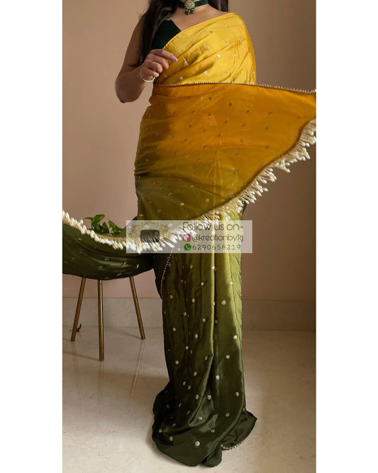 Wine- Olive Georgette Ombré Saree For Bridesmaid