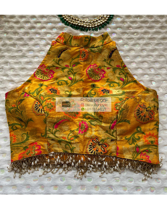 Yellow Crushed Tissue Banarasi Saree with Gota Border