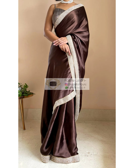 Metallic Satin Saree for Party, Cocktail, Bridesmaids Elegant Shine Meets Effortless FlowMake...
