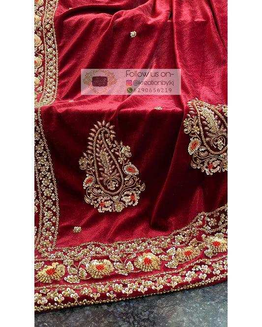 Burgundy Velvet Bridal Blouse Piece with Zardosi Work