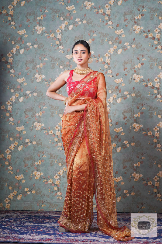 Liquid Gold Glass Tissue Badan Pe Sitare Saree