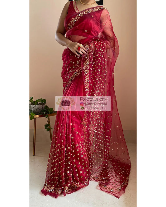 Save 20%Maroon Velvet Badan pe Sitare Saree