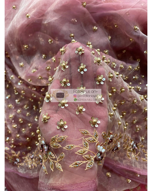Step into regal charm with our heritage tikki and sequin Handembroidery work...