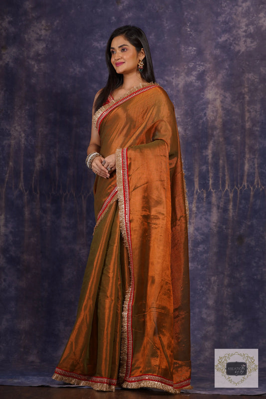Molten Copper Glass Tissue Banno Saree