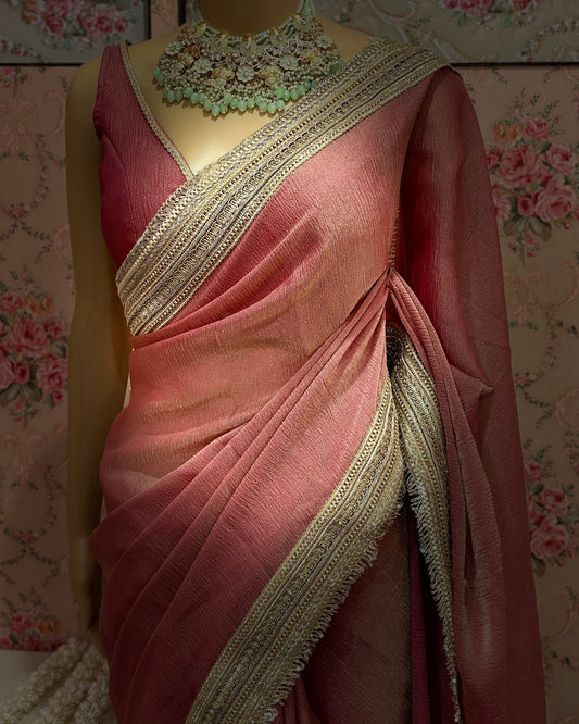 Hot Pink Metallic Shimmer Satin Banno Saree