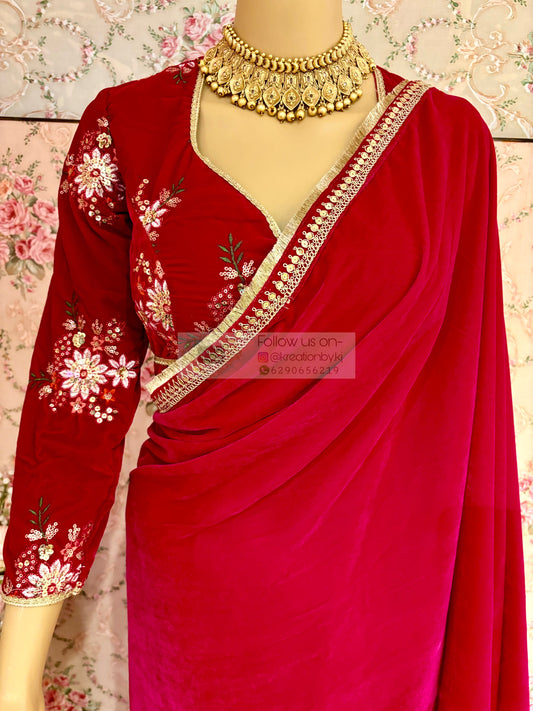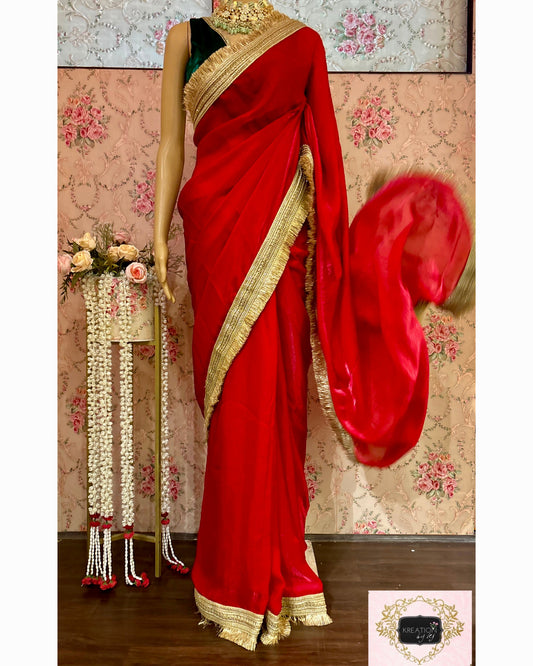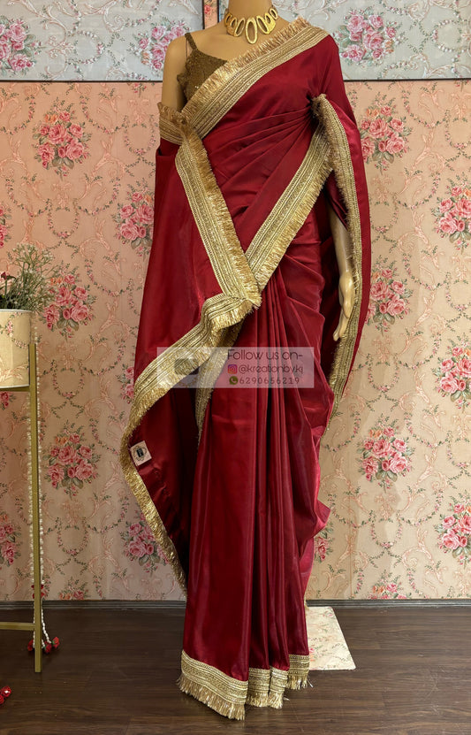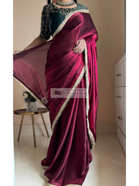 Cheery Wine Metallic Shimmer satin Banno Saree