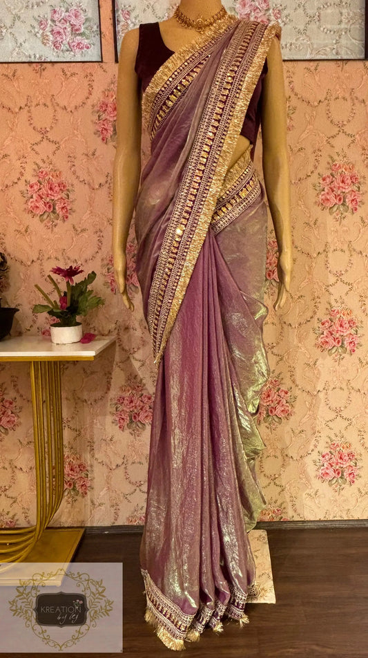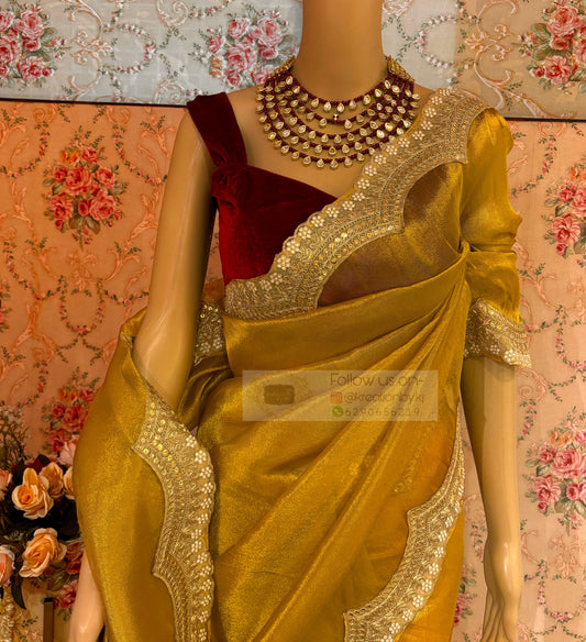 Golden Chocolate Glass Tissue Mehraab Border Saree