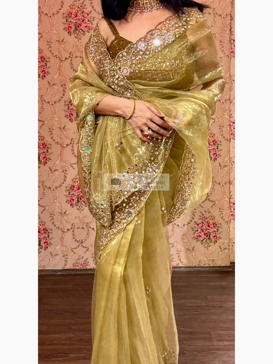 Pista Green Glass Tissue zarina Saree