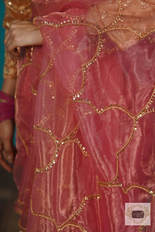 Step into regal charm with our heritage tikki and sequin Handembroidery work...