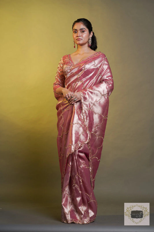 Save 12%Chaudhvin ka Chand Pink Tissue Saree