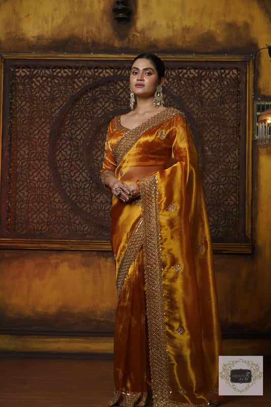 Save 20%Fiery Gold Zari Tissue Zeenat Saree