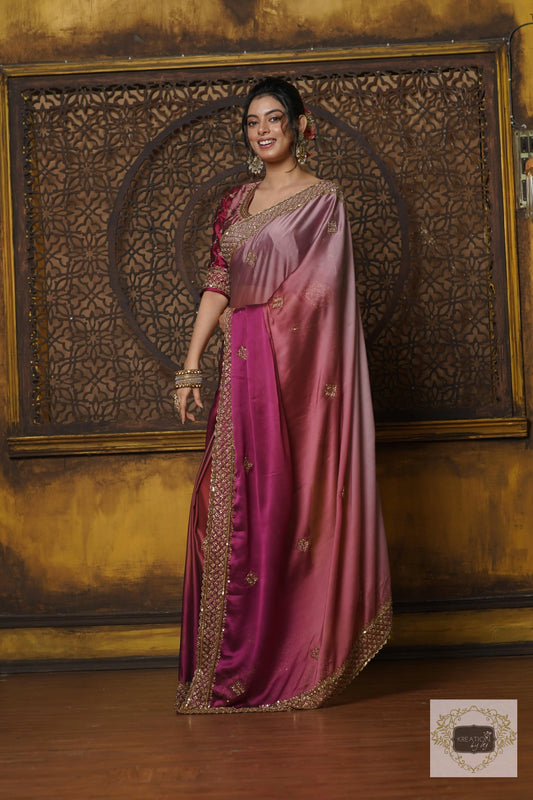 Pink Panther Ombré Georgette Zeenat Saree