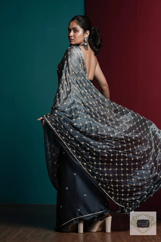 METALLIC SHIMMER SATIN COCKTAIL SAREE