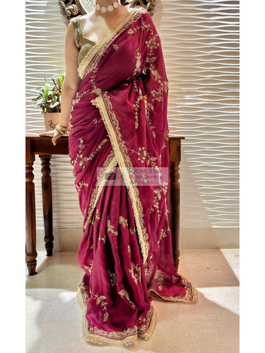 Piya Bawri Marsala Wine Georgette Bridal Saree