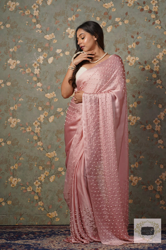 Sold outDandelion Dust Pink Crepe Silk Saree