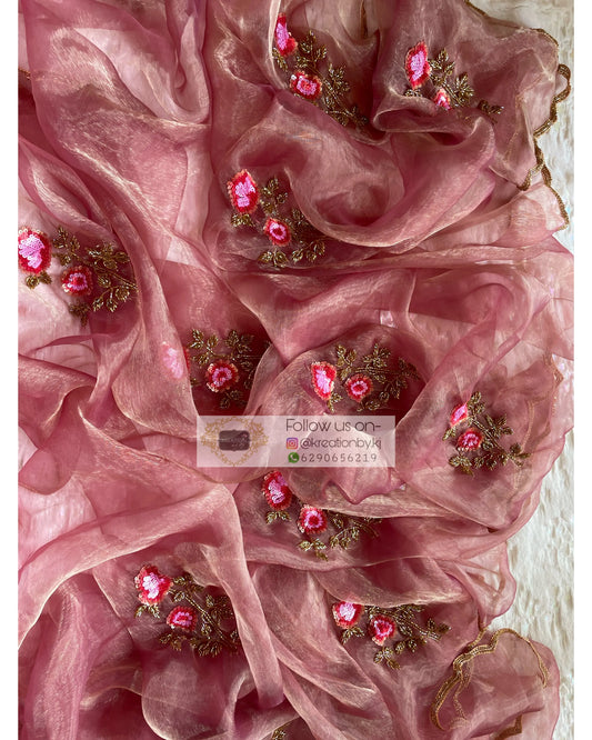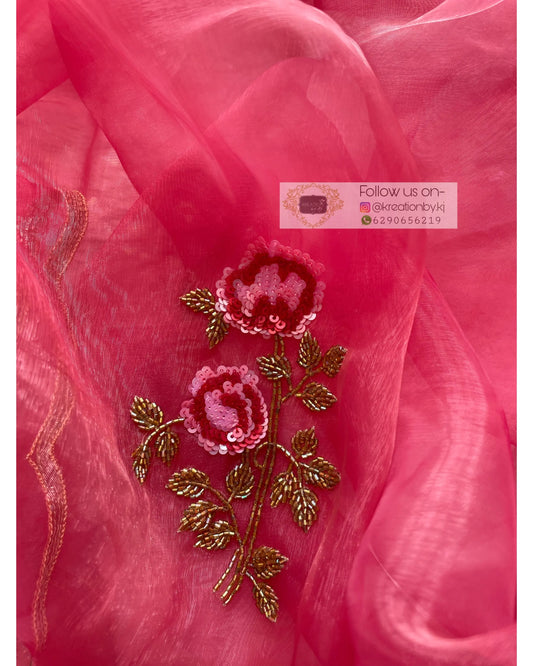 Sold outPink Glass Tissue Rose Dupatta