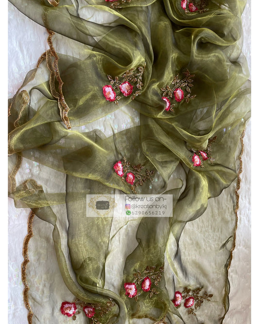 Military Green Rose Dupatta