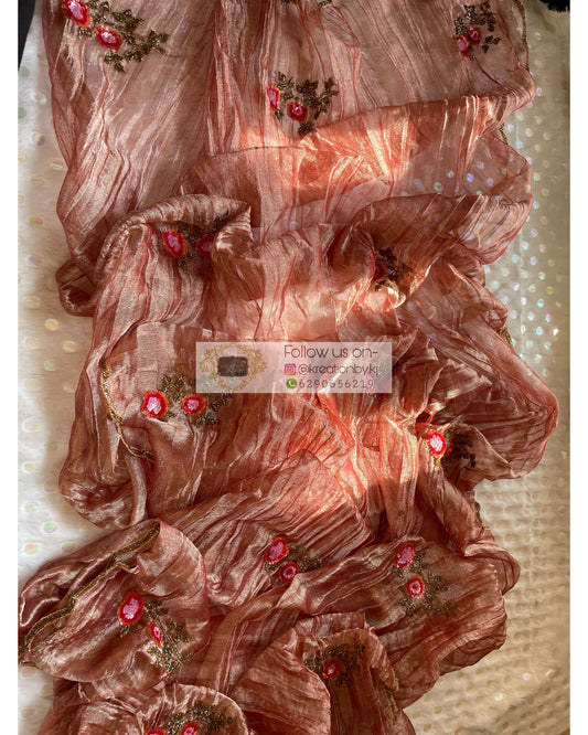 Rose Gold Zari Tissue Rose Dupatta