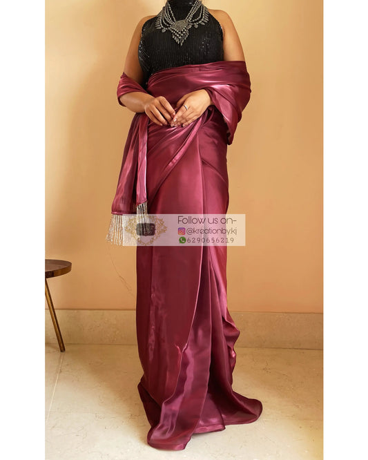 Metallic Satin Saree for Party, Cocktail, Bridesmaids Elegant Shine Meets Effortless FlowMake...