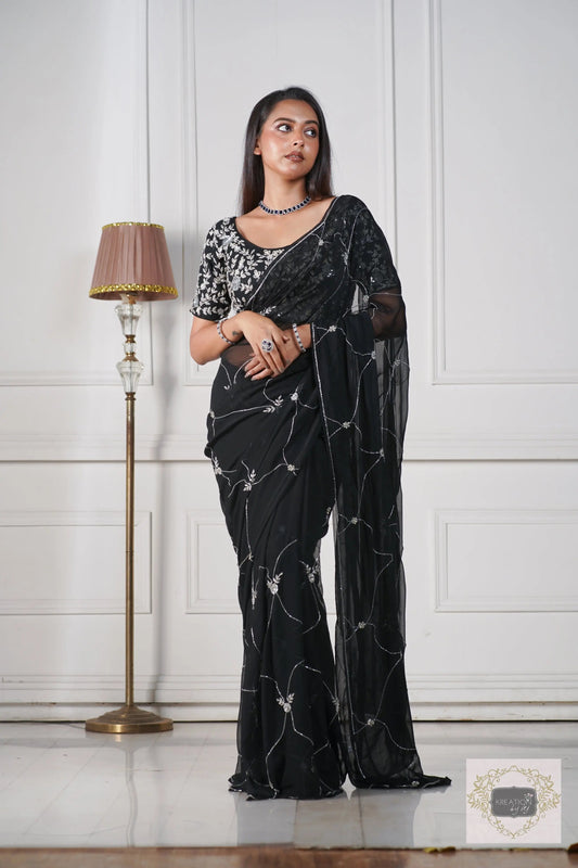 Black Pearl Paradise Georgette Cocktail Saree