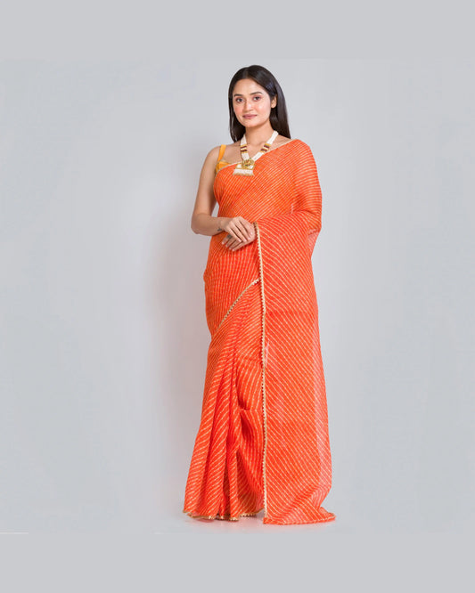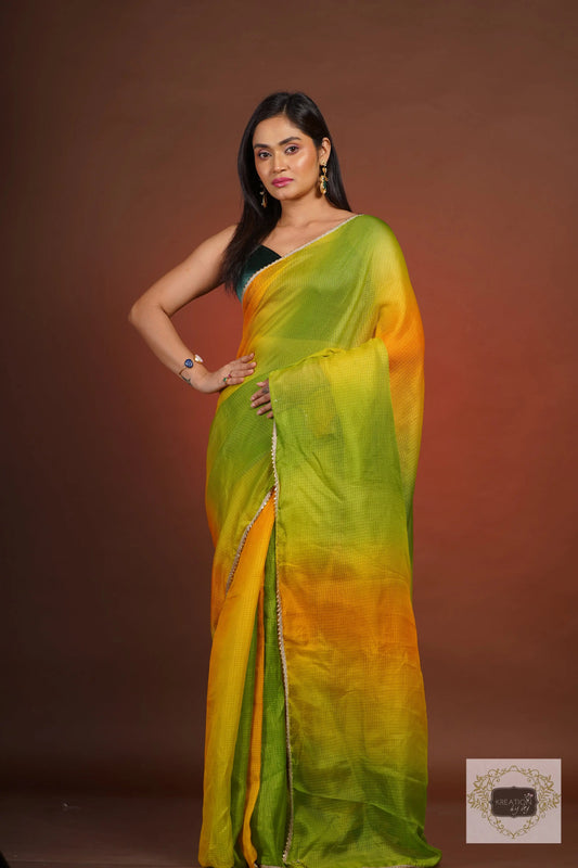 Yellow And Orange Kota Silk Leheriya Saree for Haldi