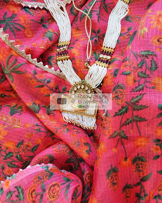 Hot Pink Leheriya Kota Silk Saree for Haldi