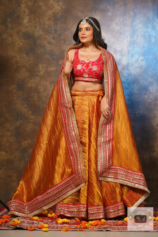 Celebrate tradition with our elegant Rajasthani Gota Work Sarees and Dupattas, designed...