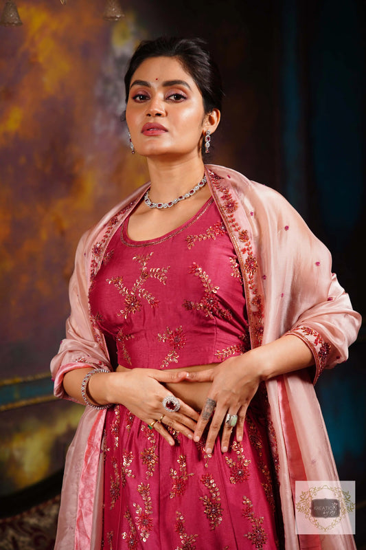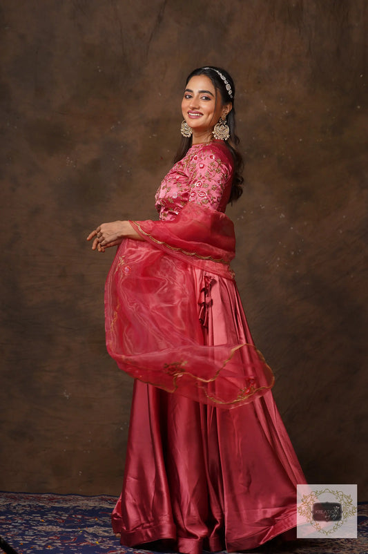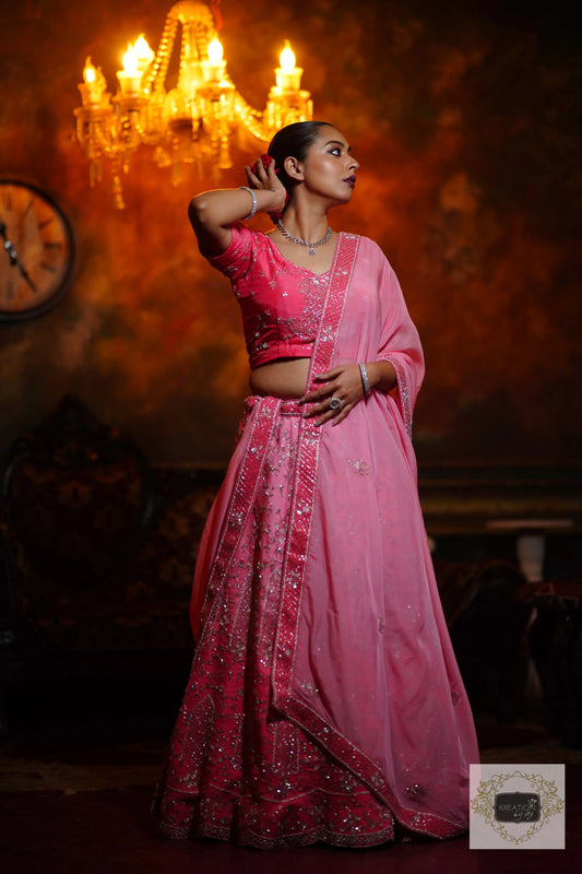 Ombre Pink Parfait Handembroidered Lehenga Set
