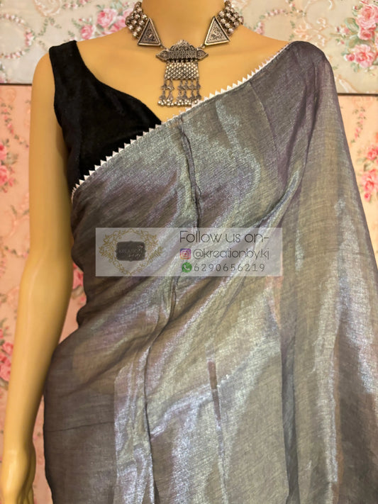Grey Cotton Tissue Cocktail Saree
